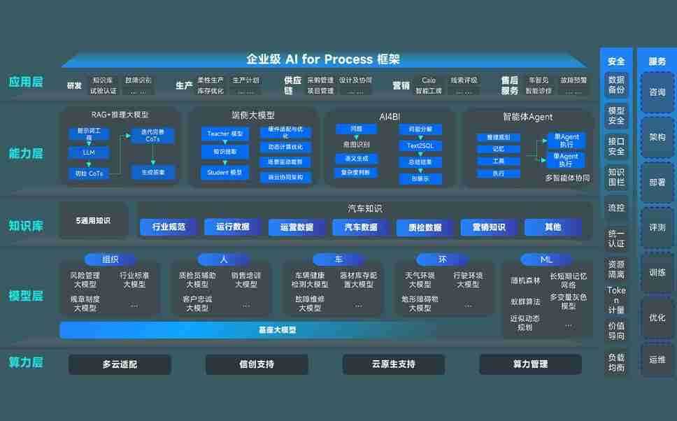 金彩汇问学智车解决方案是一套基于AI技术的汽车行业智能化系统,,覆盖从底层算力到顶层AI应用的全栈方案。。方案由算力层、、模型层和应用层组成:算力层,,,方案支持多种一体机配置,,,具备云端灵活部署、、多云适配以及动态优化计算资源的能力;模型层,,,金彩汇问学平台版提供了企业级AI应用一站式构建与管理平台,,,,支持基于后训练强化技术的汽车企业专属模型的训练、、、、评测和运营;应用层,,,金彩汇问学DeepSeek版提供包括超级员工、、、、智能招采、、、、智能营销、、、、智能客服、、AI for BI等一系列解决方案,,,可助力汽车行业实现数字化转型,,让管理更智能、、、响应更敏捷。。。。